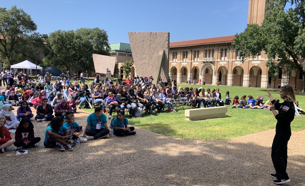 We had a fantastic time at our 2019 festival, held October 12 at the Rice campus. We had 502 girls, 130 chaperones, and over 200 exhibitors, presenters, and volunteers. The speaker was Dr. Ulyana Horodyskyj, relating her experiences as founder of “Science in the Wild” and Commander of the HERA II NASA Mars simulated mission. The students asked her many very interesting questions about her life and experiences, andabout how to apply to be an astronaut. After the keynote, the girls attended two hands-on workshops led by women scientists, engineers, or physicians.